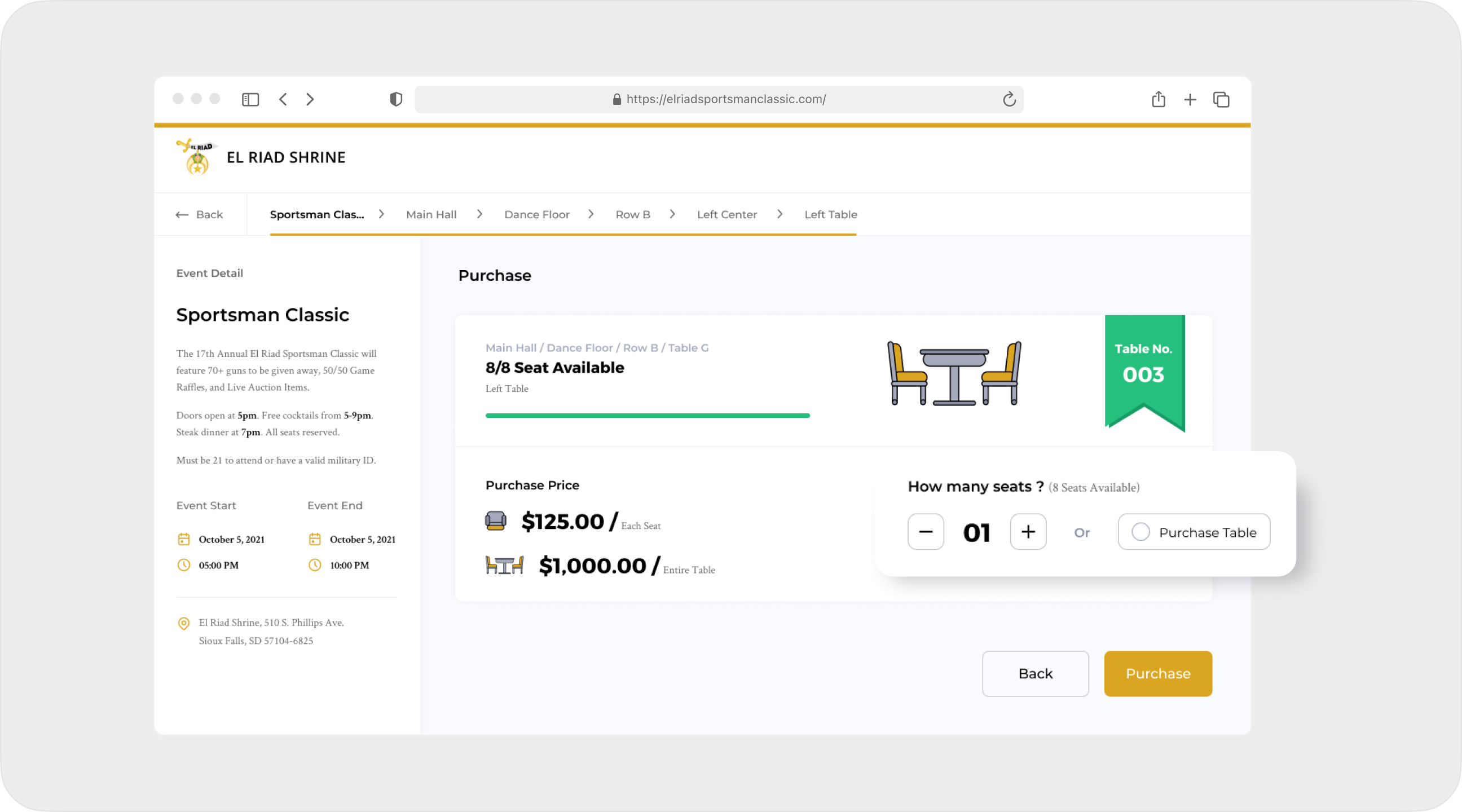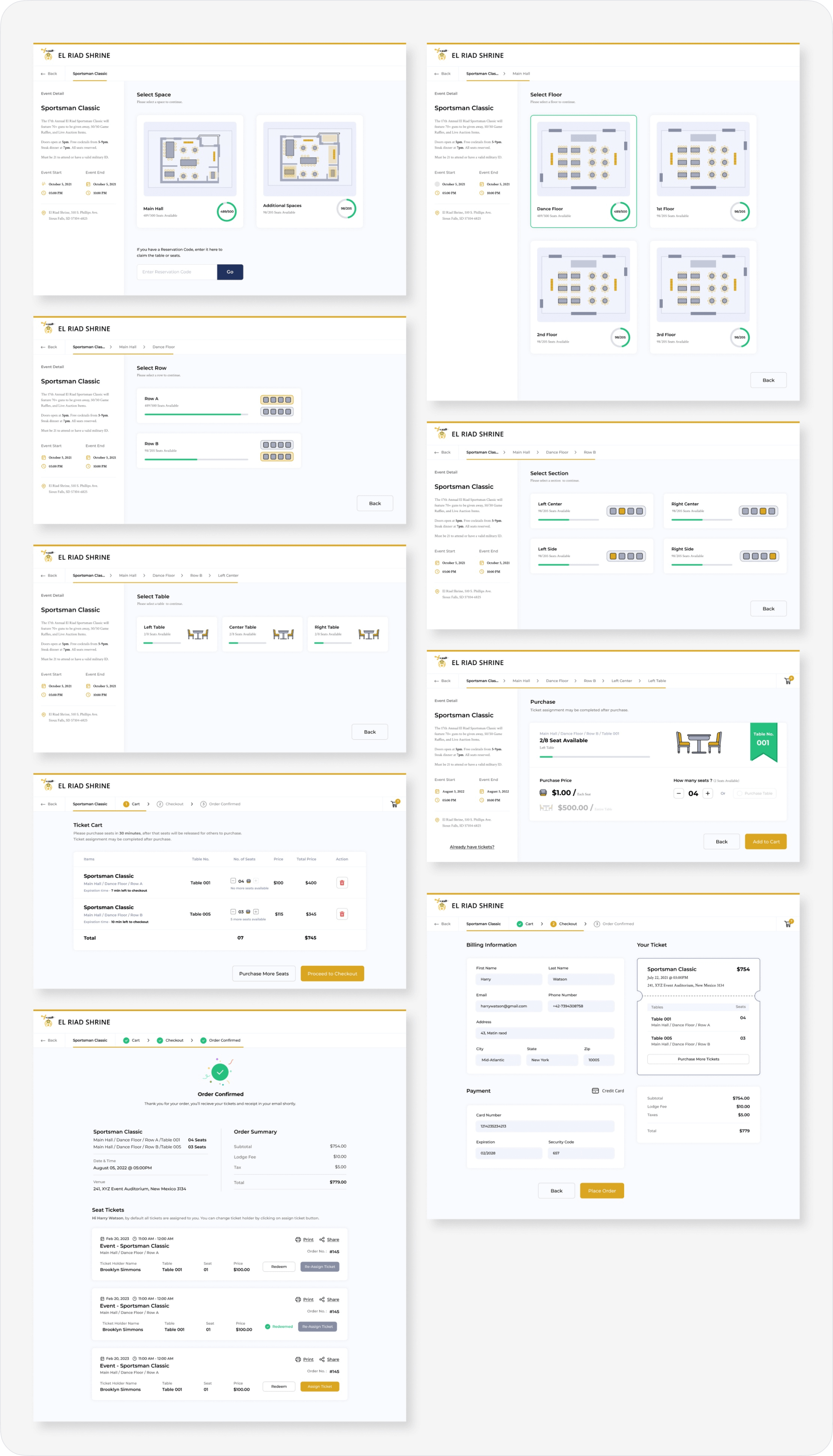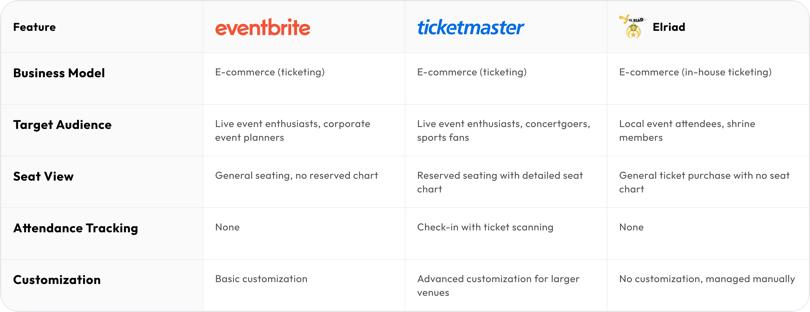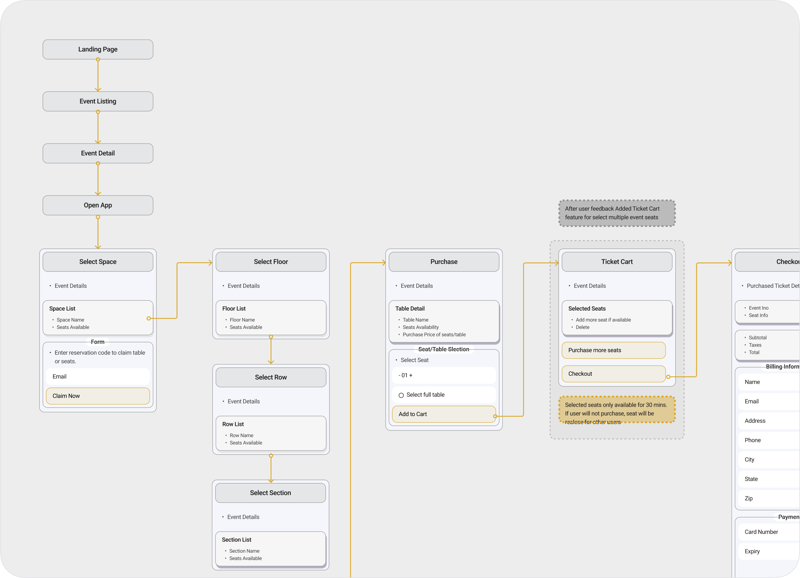 We identified key needs for the ticketing system, it should work with the current WordPress site, support reserved seating, and let users pick specific seats or tables. It should also allow code-based access for certain tables and include ticket scanning for quick entry. Tickets must show seat and table numbers clearly.